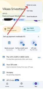 - अब आपको एक रेफेरल कोड को दर्ज करना है जिससे अगर आपने पहले से कभी गूगल पे पर अपना अकाउंट नहीं बनाया होगा तब आपको रेफरल कोड दर्ज करते हीं ₹21 मुफ्त में मिल जायेंगे।